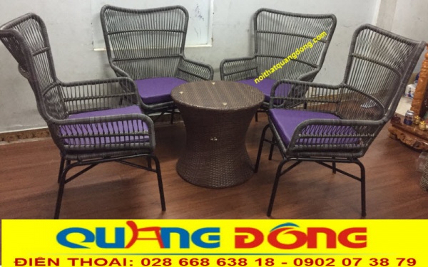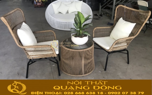 Mẫu bàn ghế giả mây QD-387 màu nâu mốc mang tính tự nhiên được ghi hình tại xưởng của Nội Thất Quang Đông